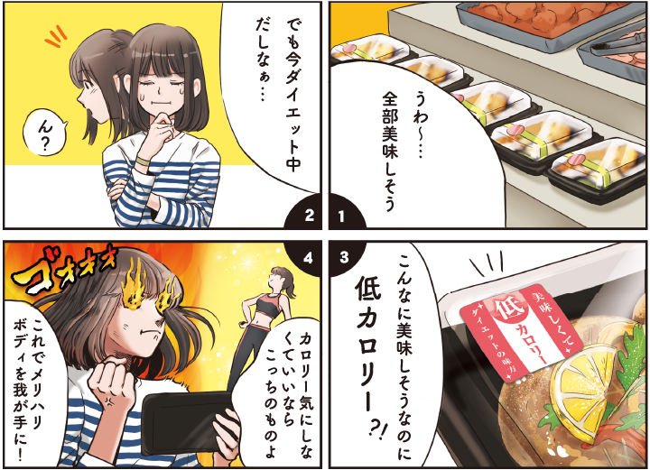 女性はもちろん男性でも、肥満やメタボリックシンドローム対策として日々の食事に気を遣っています。そんなお客様にどの食品、食材がヘルシー且つ低カロリーなのかをわかりやすく表示することでより手にしていただける確率が上がります。